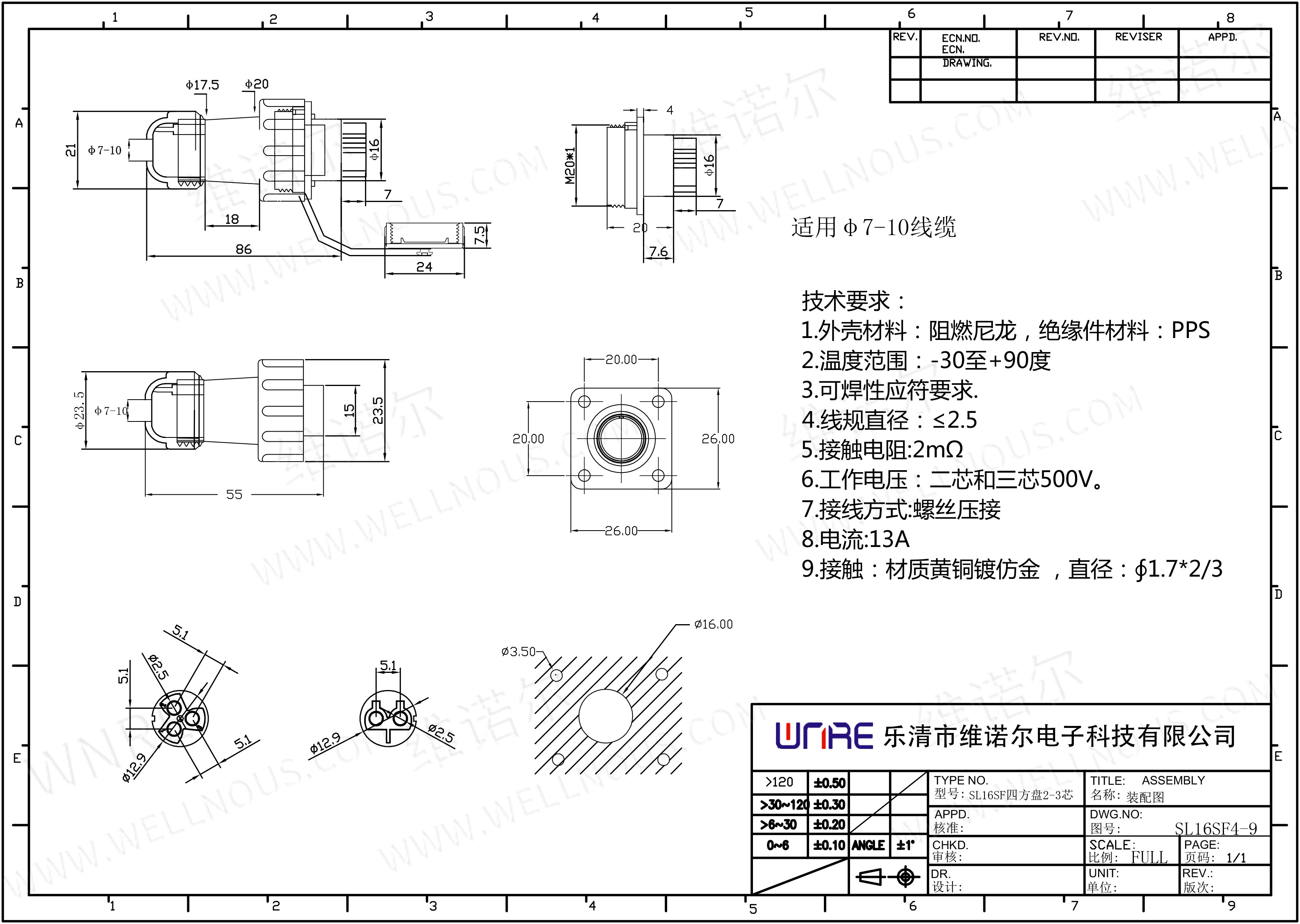 Cable diameter: Φ7-10mm