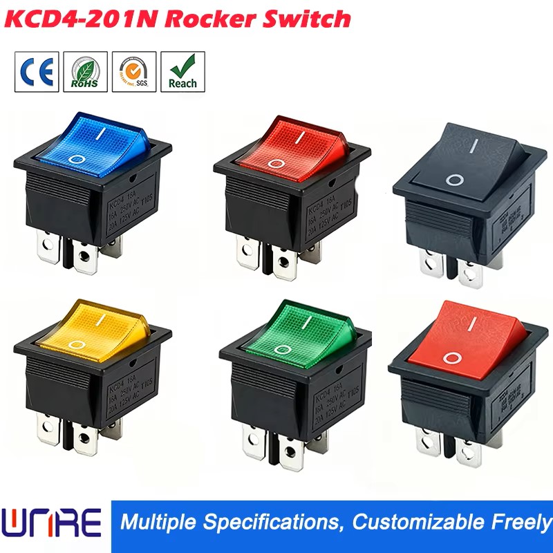 KCD4 Rocker Switch ON-OFF 2 Position 4 Pins with Light 16A/20A Heavy Duty Power Switch for Electrical Equipment