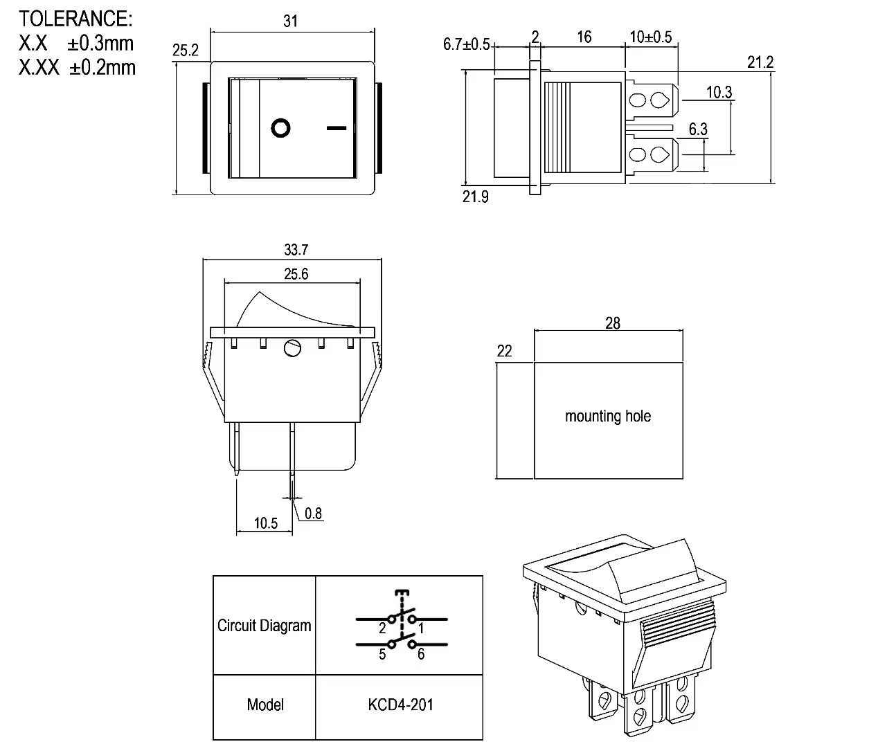 The KCD4 Rocker Switch offers a versatile 2 position design, providing multiple options for your electrical needs.