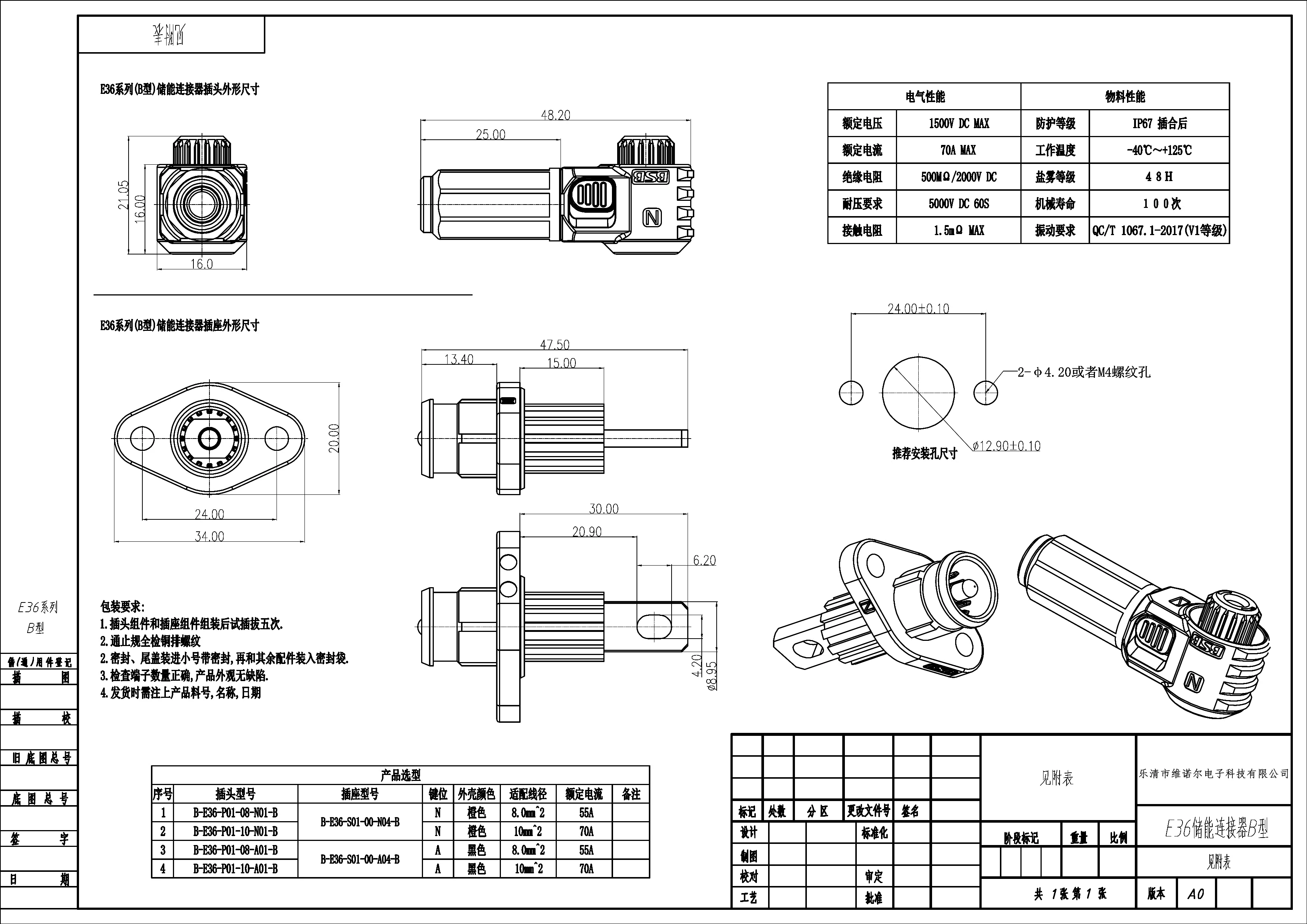 Quick Plug Energy Storage Connector Single Core New Energy Terminal High Voltage Connector